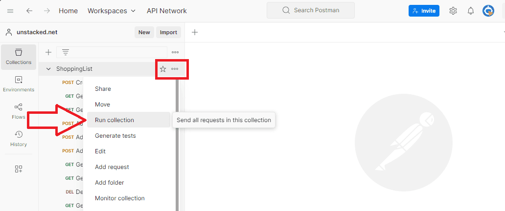We established in the previous step that we can use JavaScript to write assertions for a request, turning postman requests into tests. The next useful feature is the ability to run all the requests for a collection in one go.